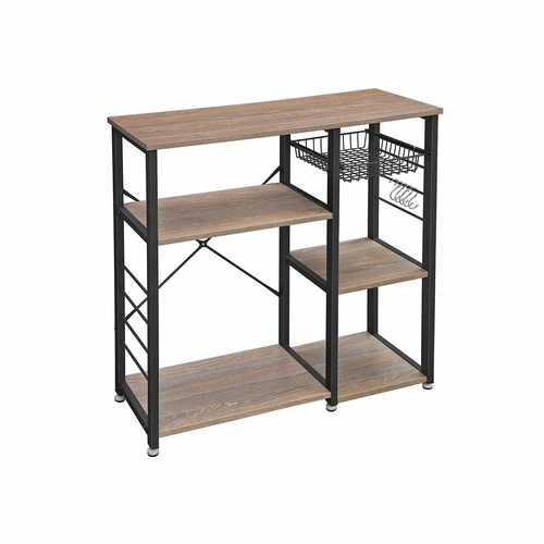 Pramoninio stiliaus virtuvės lentynos su tinkliniais krepšeliais